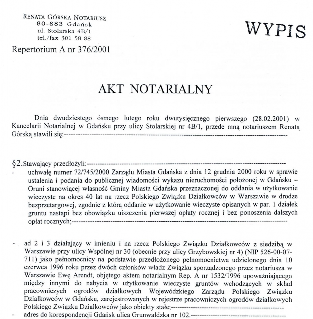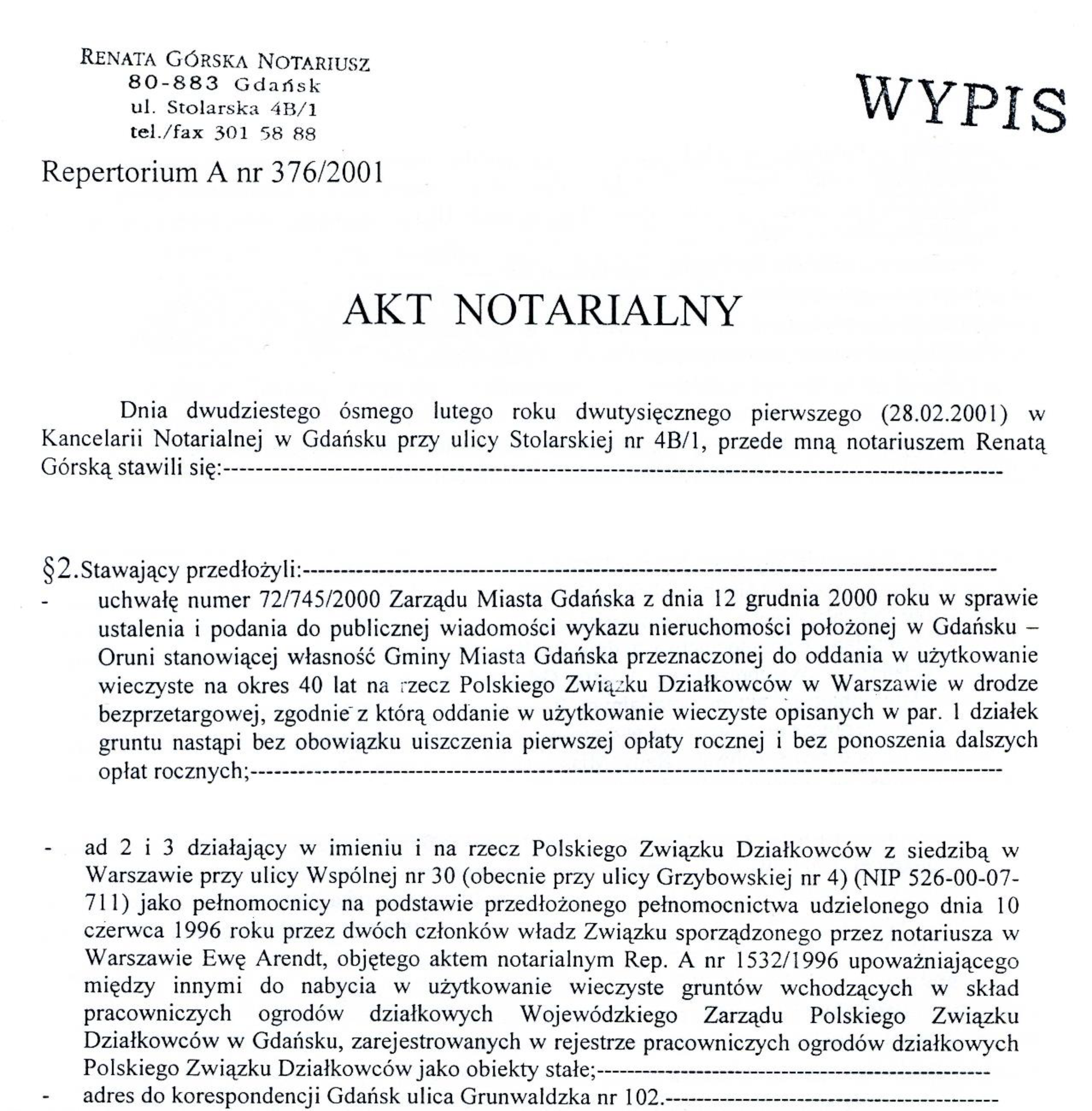 Wreszcie po 16 latach starań podpisany zostaje akt notarialny, a Ogród „JAR” staje się ogrodem stałym i ma dzierżawę wieczystą na okres czterdziestu lat, tj. do roku 2040. Poniżej trzy informacje z aktu notarialnego.