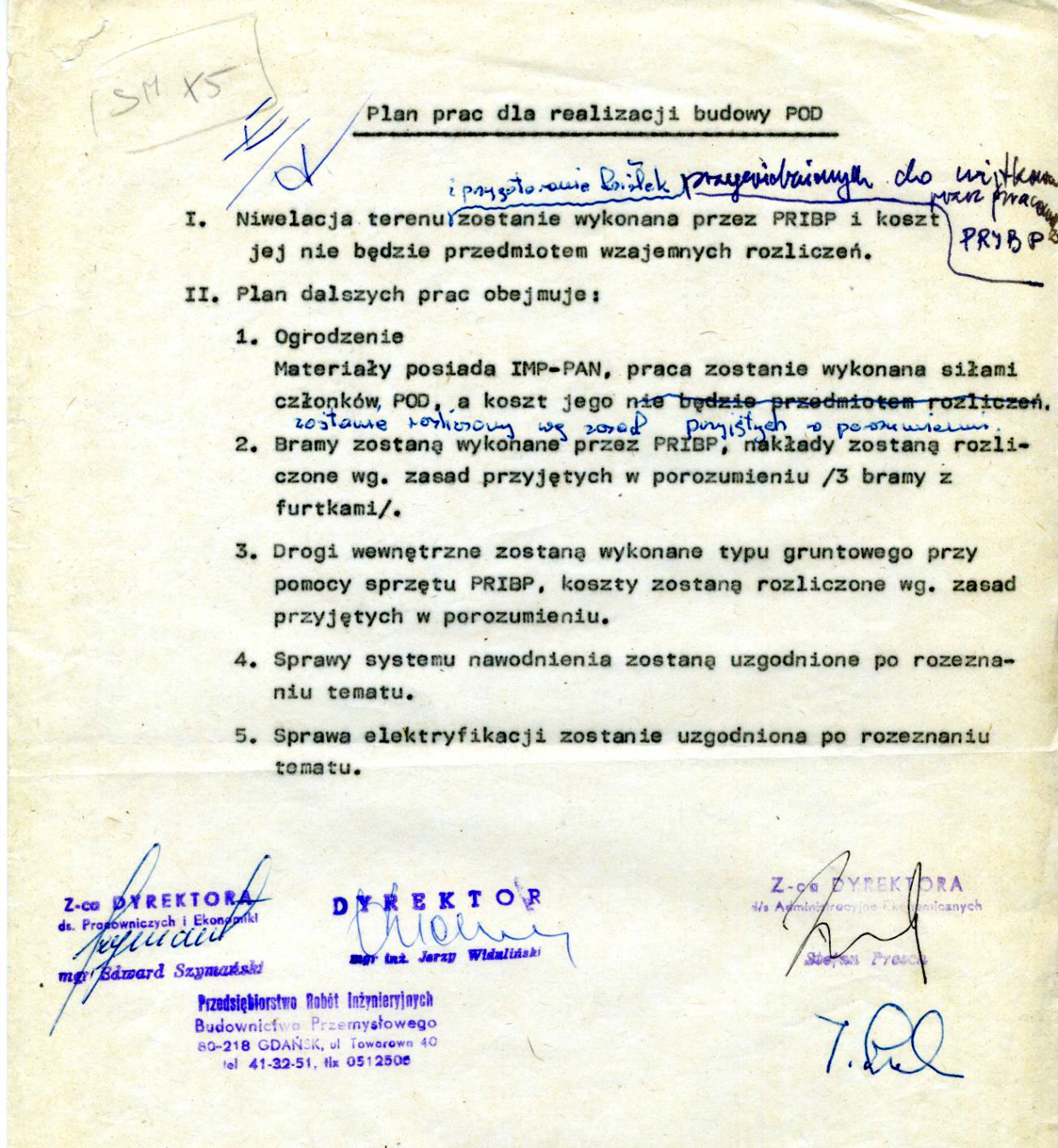 Powstaje pierwszy „Plan prac dla realizacji budowy POD” w porozumieniu z Przedsiębiorstwem Robót Inżynieryjnych Budownictwa Przemysłowego oraz przy wsparciu Instytutu Maszyn Przepływowych Polskiej Akademii Nauk.